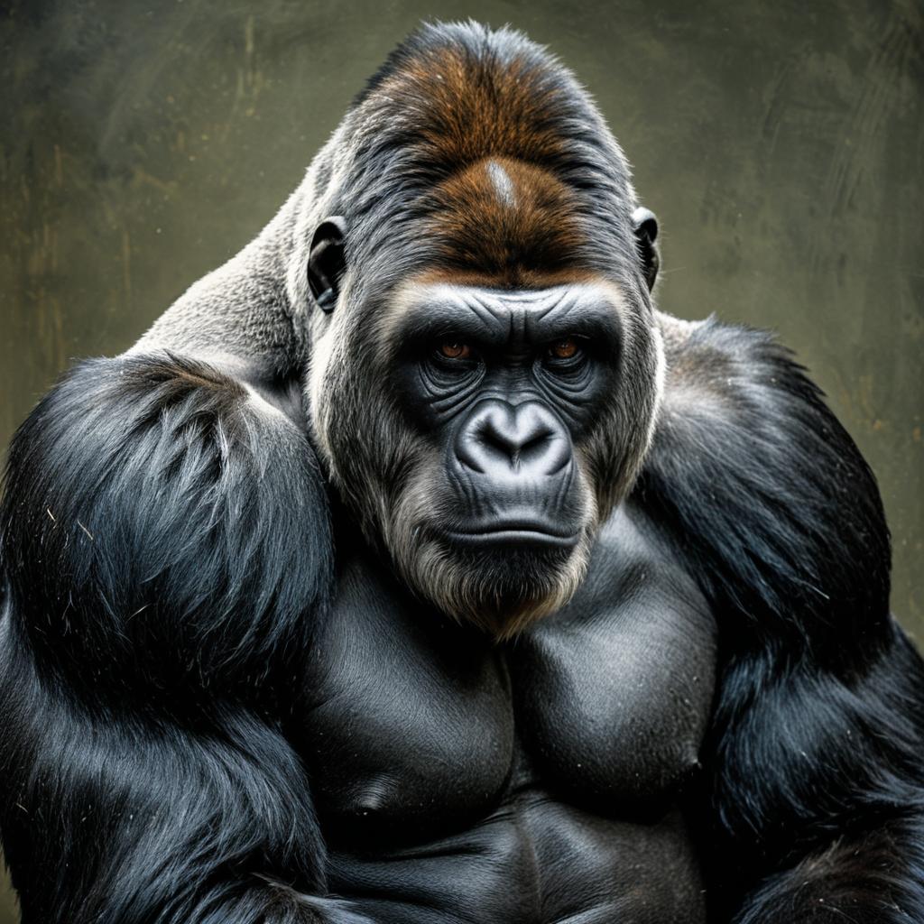 Silverback gorilla in double-breasted blazer, realistic oil painting, detailed facial features, 4k, ultra-detailed, realistic, formal attire, sophisticated, professional, serious expression, classic lighting, naturalistic colors, powerful presence