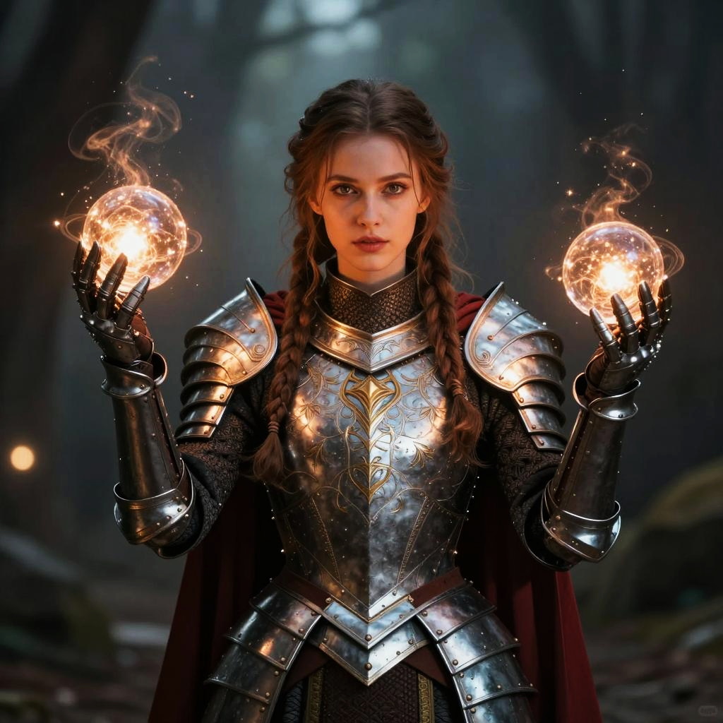 Fantasy Woman Knight with Magical Orbs