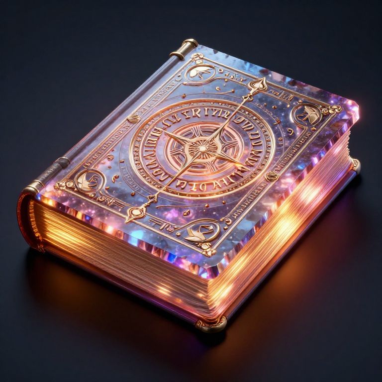 Crystalline a pulsating runic grimoire with glowing designs, Octane Render, 4k, high resolution, hyper realistic, dramatic scene, vivid colour,