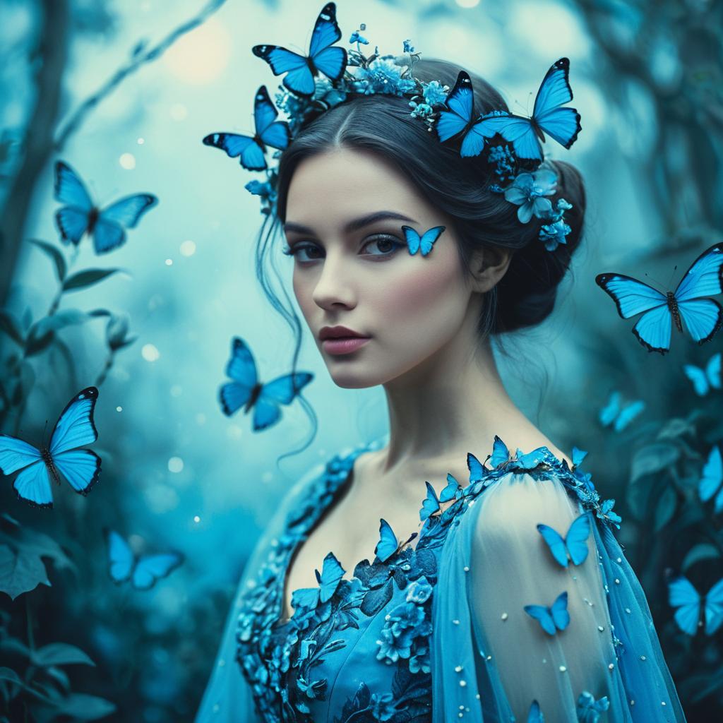 Mystical Woman with Blue Butterflies