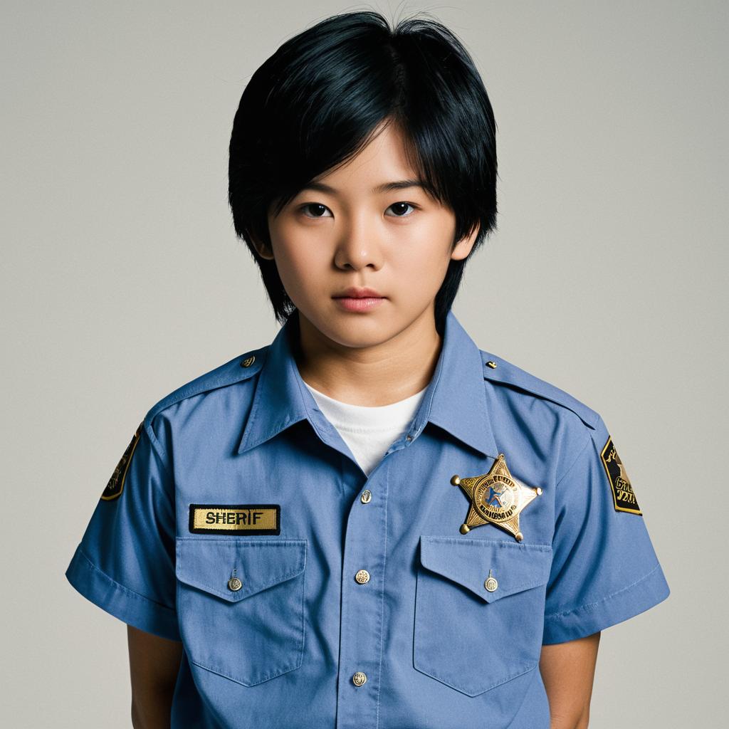 Kit kat fancy dress costume,solo, male focus, hat, 1boy, realistic, looking at viewer, standing, uniform, long sleeves, shirt, black hair, white shirt, closed mouth