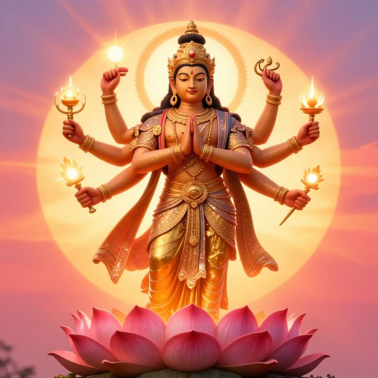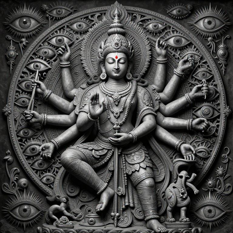 Intricate Hindu Deity with Many Arms