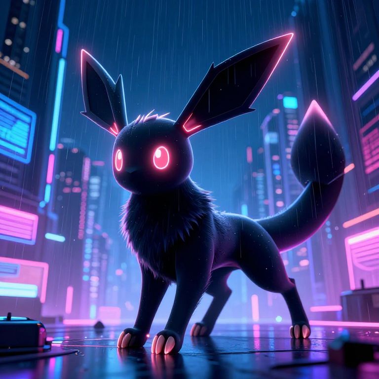 Cyberpunk Umbreon Neon Nightscape