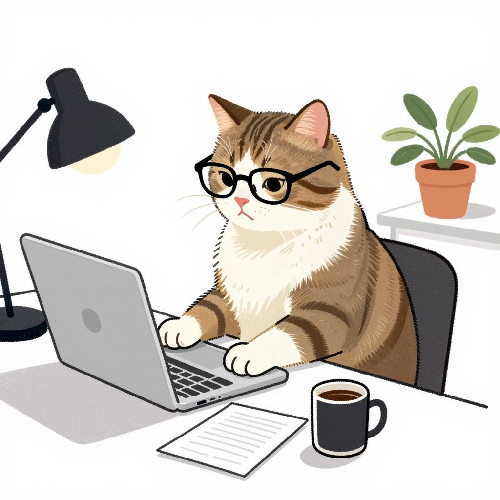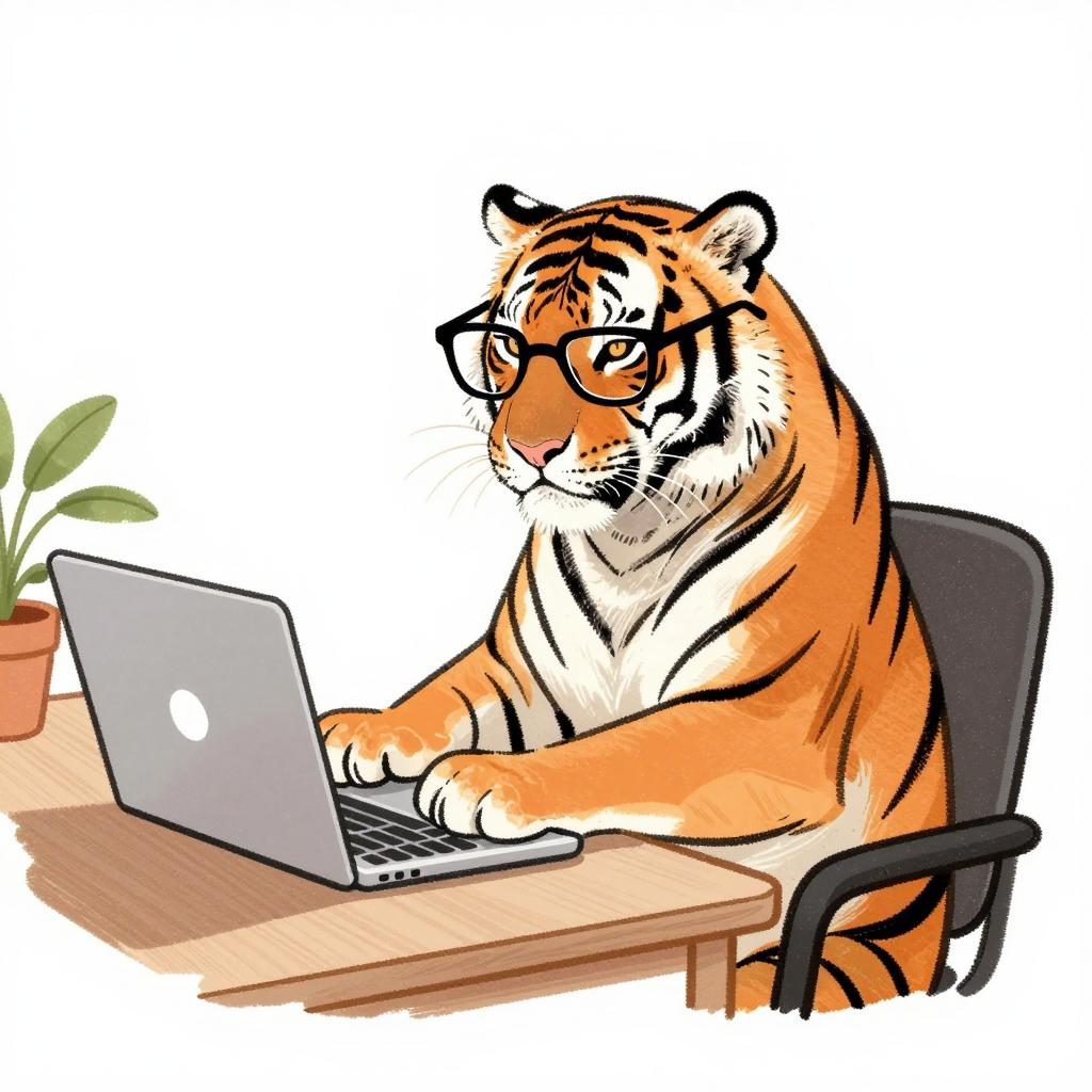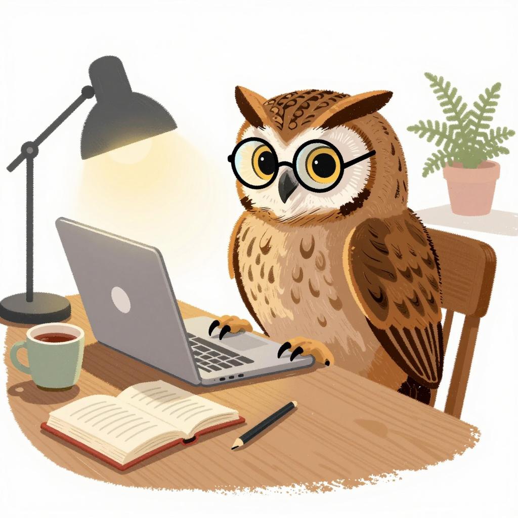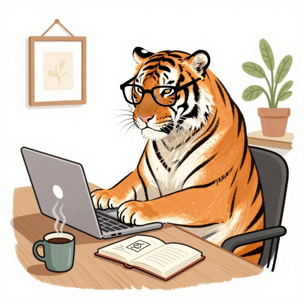 Urban Sketching Draw an illustration of a bear wearing glasses, sitting on a chair in front of a laptop. The bear should be positioned as if it is working on the laptop, typing or reading something on the screen. The environment should suggest a comfortable and cozy workspace, perhaps with a lamp or a potted plant in the background. The bear should have a calm and focused expression on its face, conveying a sense of determination and concentration. Use your creativity to add unique details that make the illustration stand out, such as books or papers scattered around the workspace, or a mug of coffee or tea on the desk.