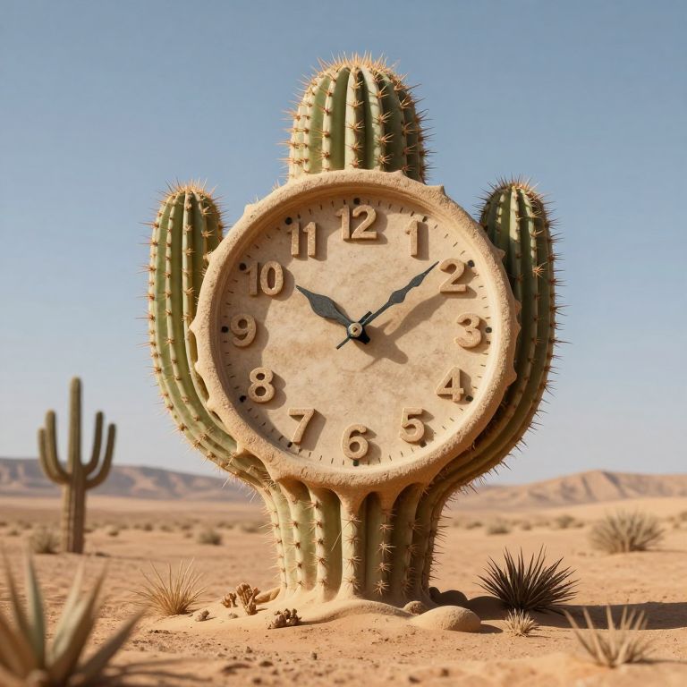 Clockwork kangaroo strides through a desolate desert landscape, its body encased in a golden clock face, while a single hourglass lies shattered beneath its paw, sand trickling away amidst scattered fragments of glass and sand.