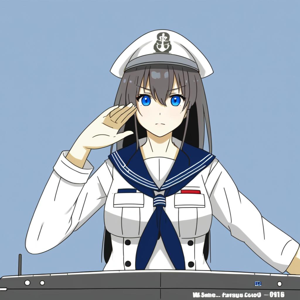 Ha-class destroyer, kantai collection, 1girl, blue eyes, long hair, short hair, serafuku, serafuku, by artist koikawa minoru, anime