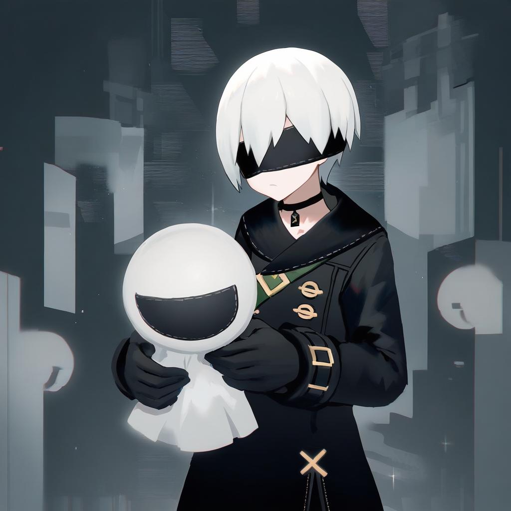 Illustration of 9s (nier:automata), nier (series) in the style of Mamuru