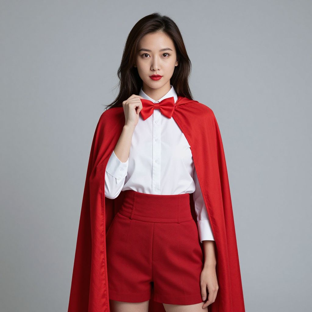 Woman in Red Cape and Bow Tie