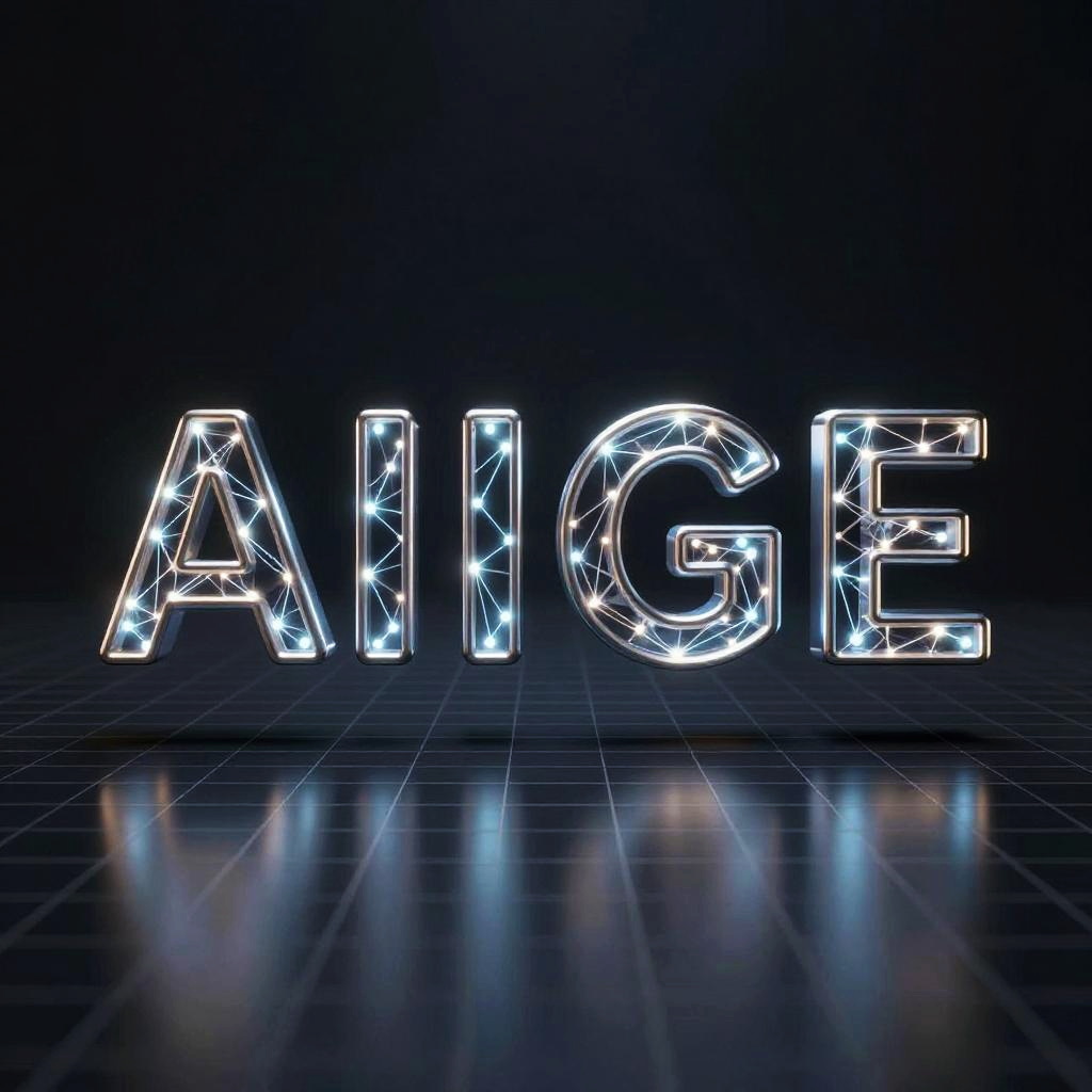 Ai word art in a minimalist style with sleek metallic letters embedded with glowing AI neural network nodes, floating above a dark digital grid with subtle reflections and a sense of advanced technology.