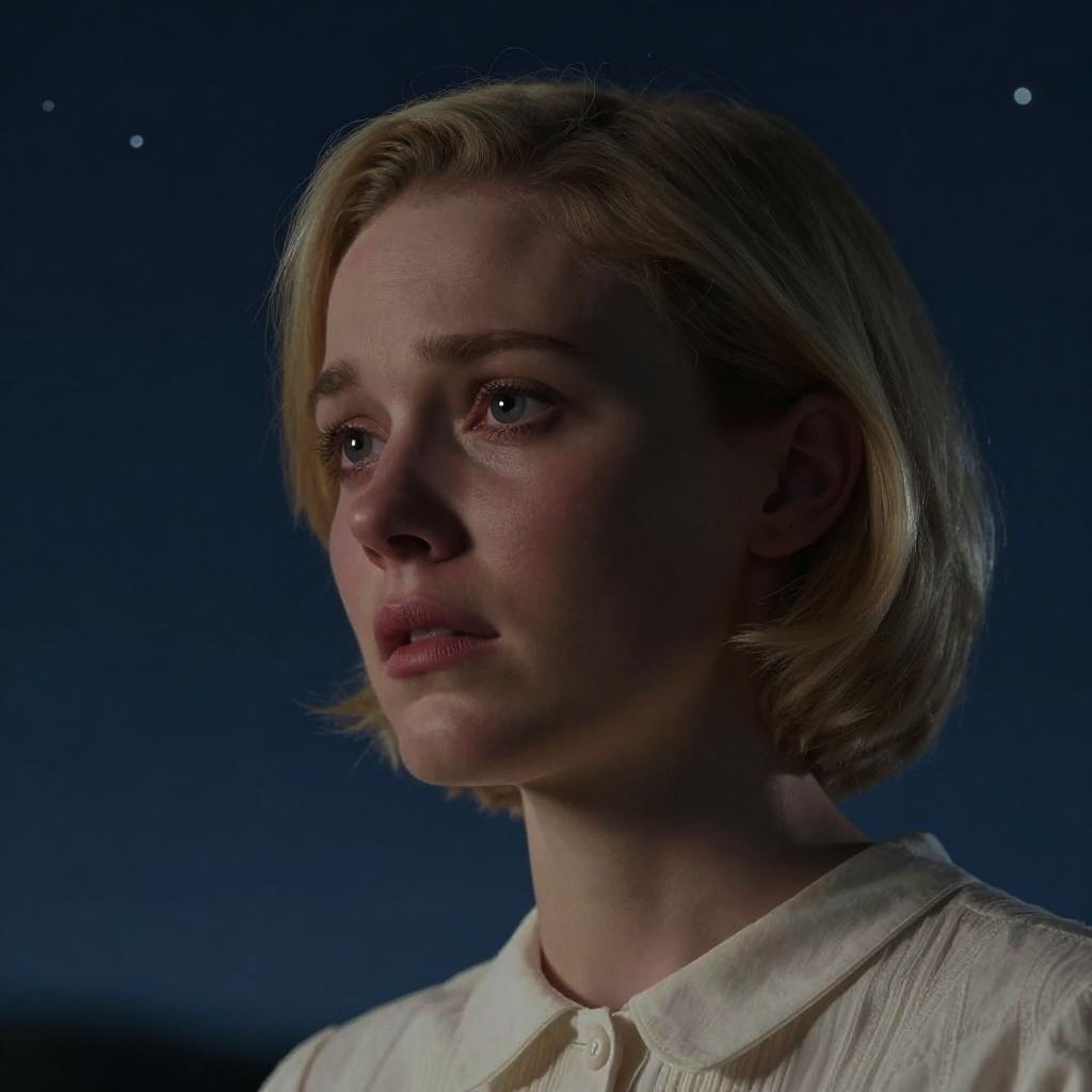 Photorealistic Grieving Woman Under Starry Sky