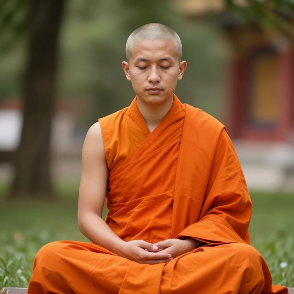 DEN_blonde_gabie, (a Buddhist monk sitting outside and meditating in a Buddhist monastery wearing orange Buddhist robes, Buddhist, tranquillity, peace:1.2), bokeh, f1.4, 40mm, photorealistic, raw, 8k, textured skin, skin pores