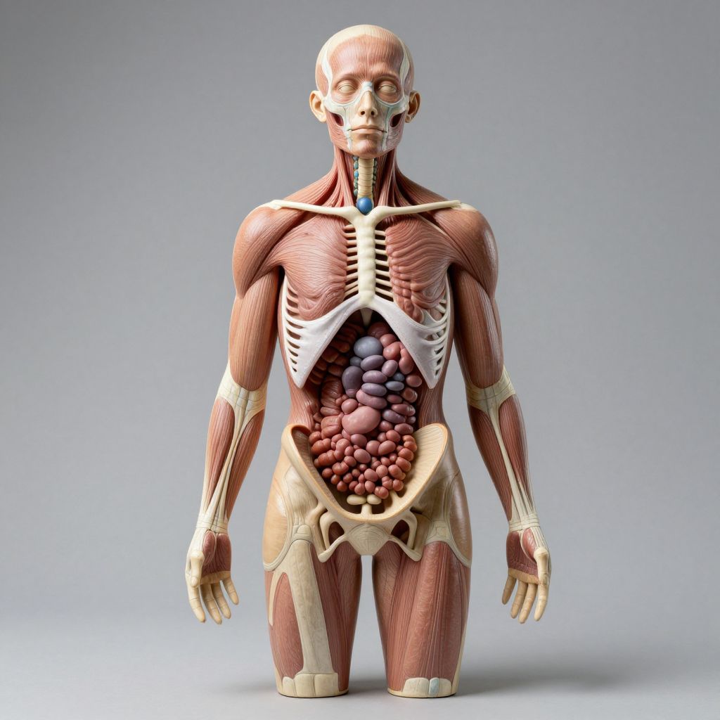 Sculpture anatomical illustration of human microbiome, medical encyclopedia, photograph, photoreal, 200ml, sony Alpha a7, ISO 1900, Leica M, photorealistic, highly detailed, accurate,