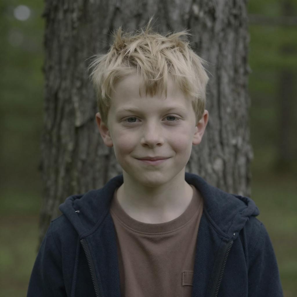 Boy with White Hair on Wooden Fence