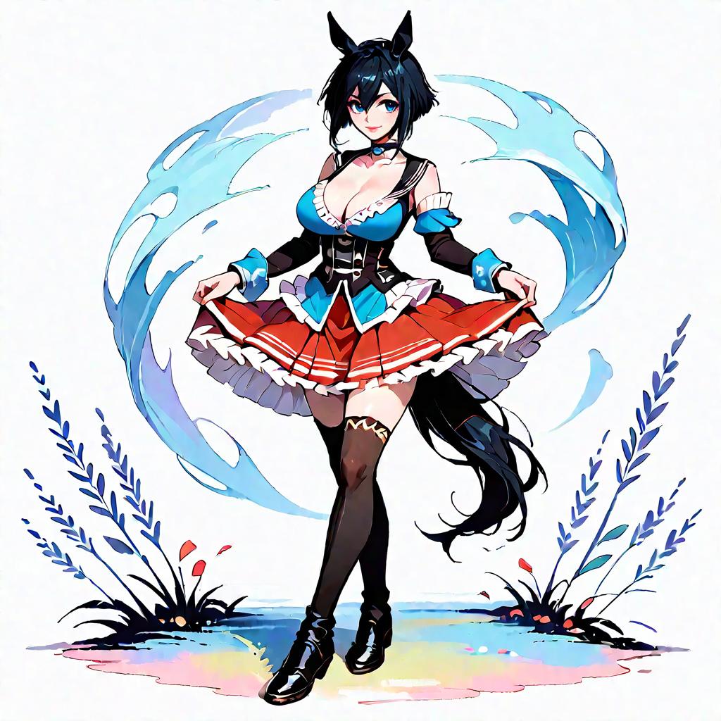 Anime Cat Girl in Black Dress