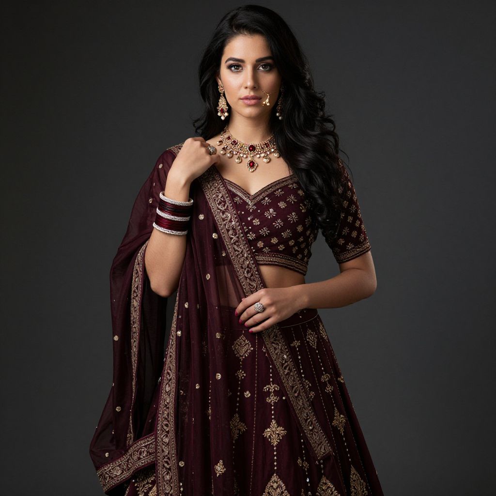 Elegant Dark Maroon Bridal Lehenga