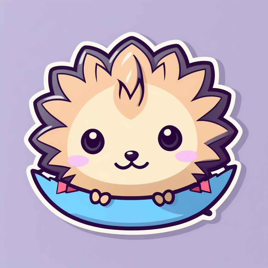 User interface icon of a hedgehog as a kawaii cartoon sticker, die-cut style, 2D vector illustration inspired by Ken Sugimori’s anime designs.