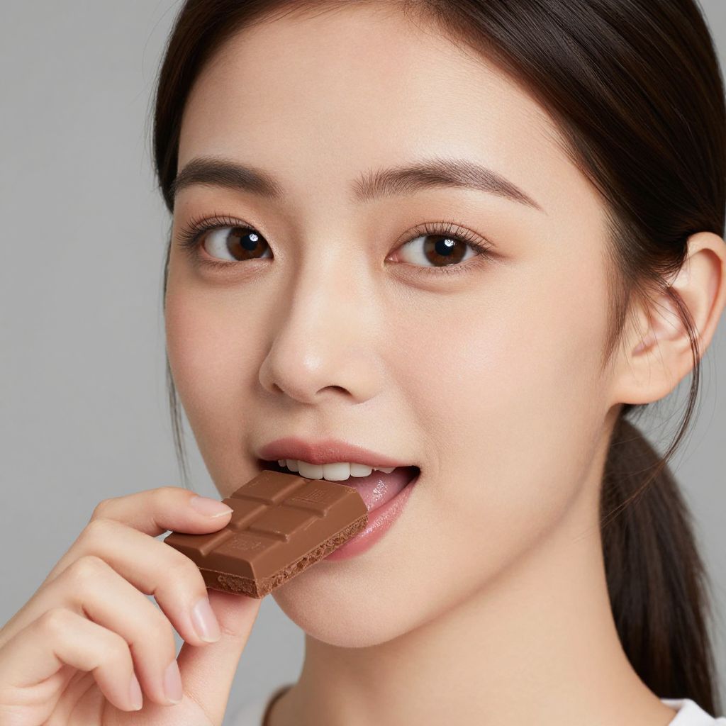 Closeup Portrait of Woman Eating Chocolate