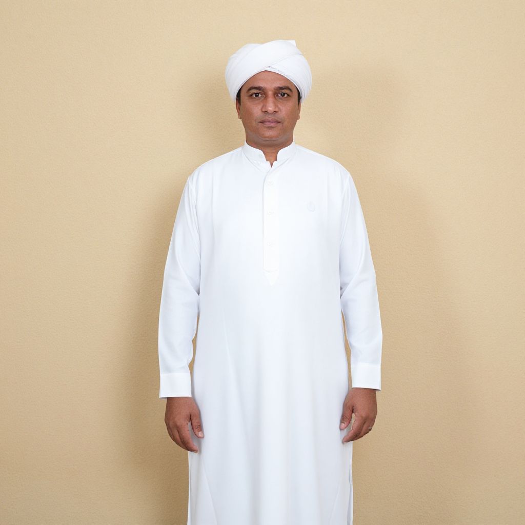 "Shadi Dressing Man, man in white turban standing in front of a wall"