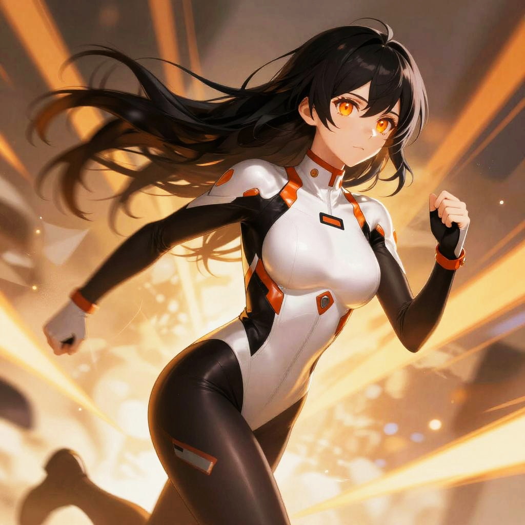 Score_9, score_8_up, score_7_up, rating_safe, woman, solo, superhero, white bodysuit, quantum, full body, white cape, long hair, black hair, floating, city background, outstretched arms, t-pose, standing
