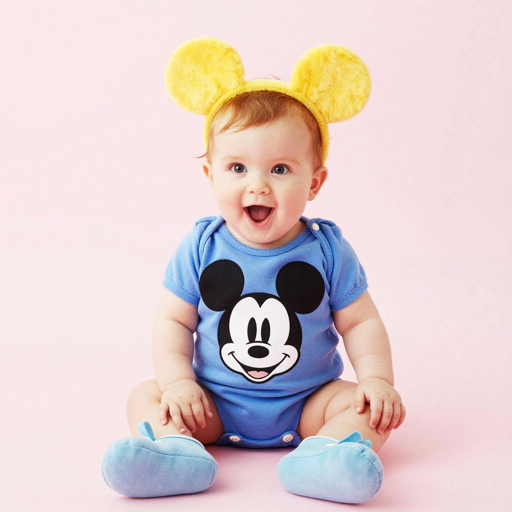 Joyful Preschool Girl in Mickey Outfit