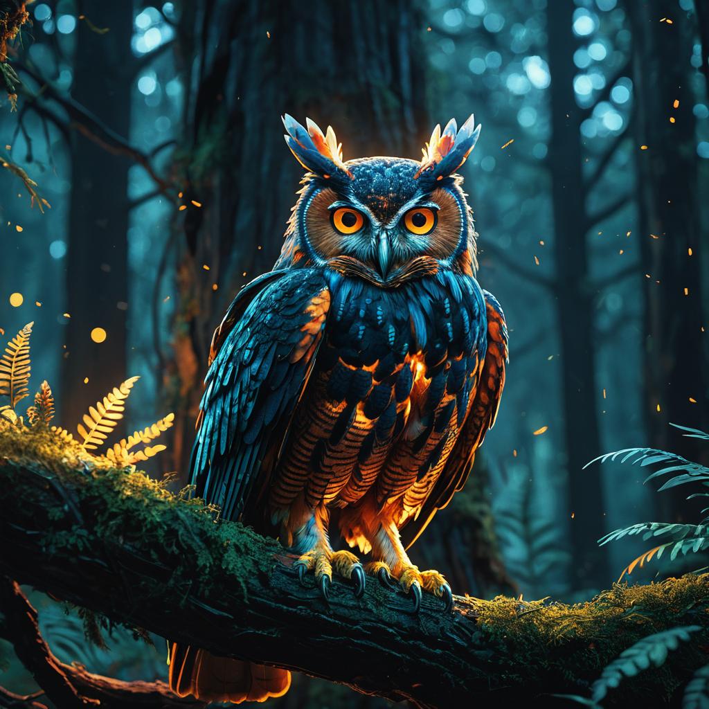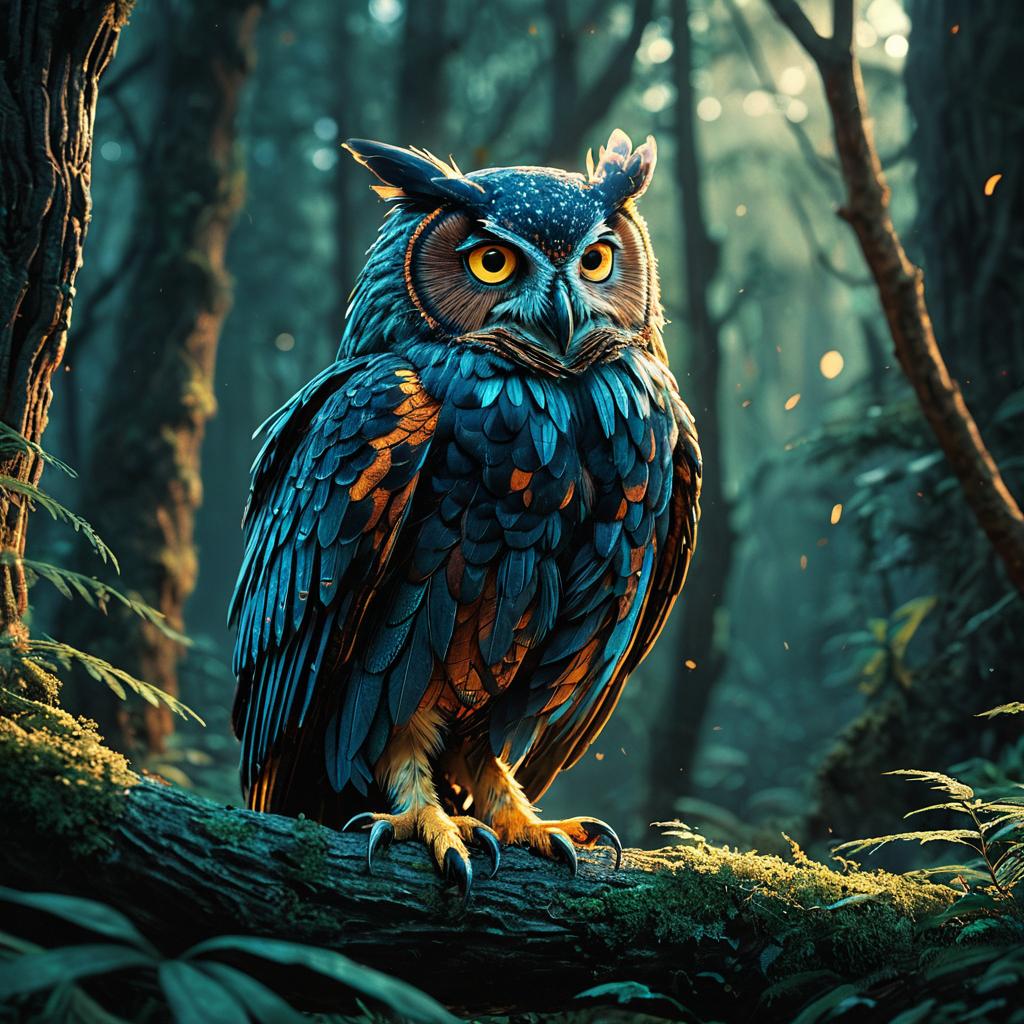 Iridescent Phoenix-Owl Hybrid in Twilight Forest