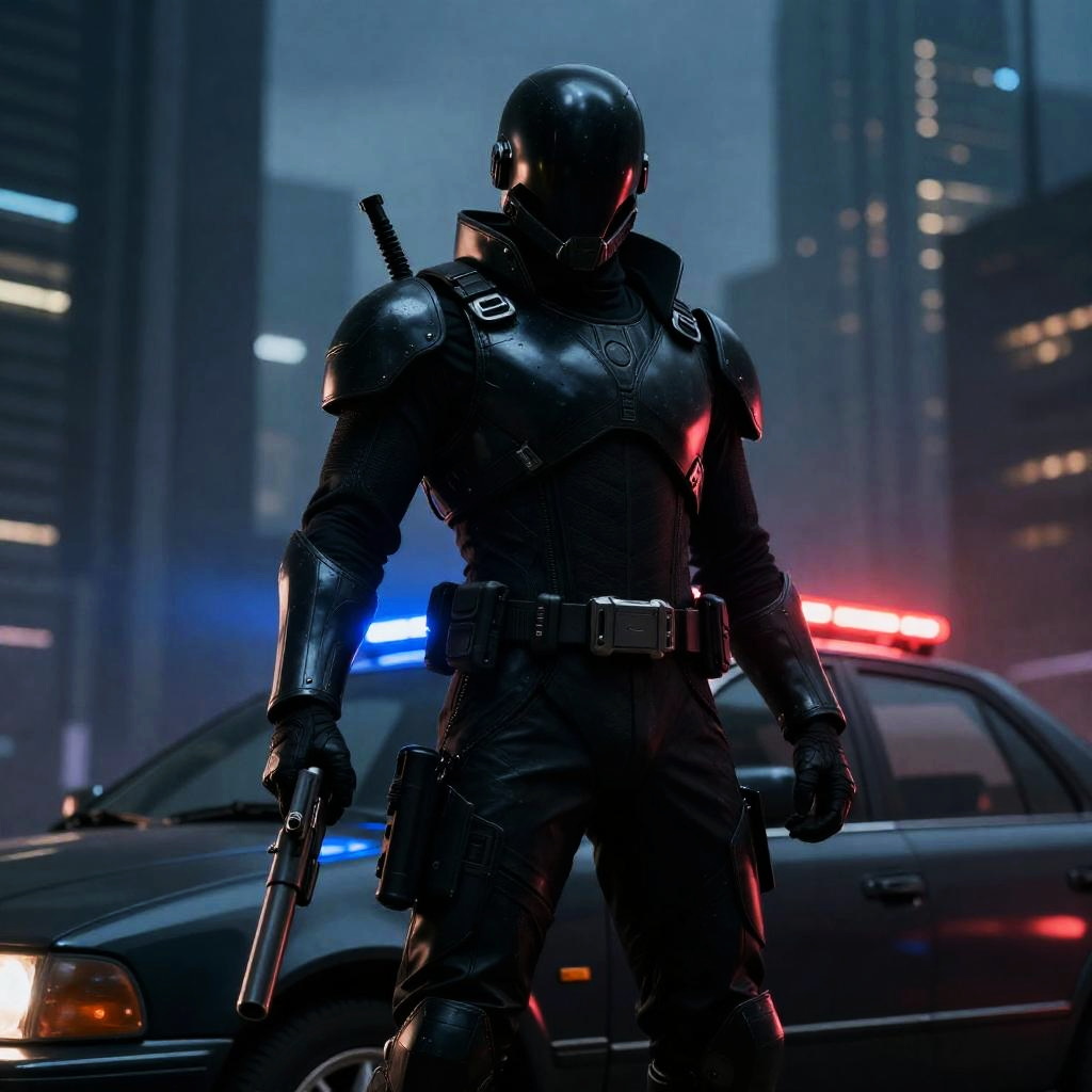 Photo realistic, ultra detailed, natural light environmental portrait of cyberpunk assassin with neon visor, in rain-soaked futuristic city street at night, cinematic scale, volumetric fog, drifting ash, rimlit edges, witchfire embers, Hyperrealism, breathtaking, ultra realistic, highly detailed skin and fabrics, realistic wet surfaces, micro-contrast, subtle film grain, stunning environment, wide-angle sense of space, 35mm perspective, Leica SL2, f/2.0 ISO 100 1/250, RAW, cinematic lighting, deep shadows and soft highlights, Style-Undead:0.73, photography, immersive atmosphere, dramatic composition