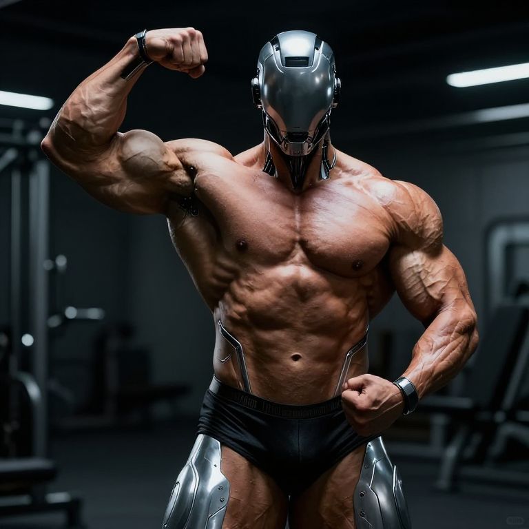Cybernetic Bodybuilder in Futuristic Armor