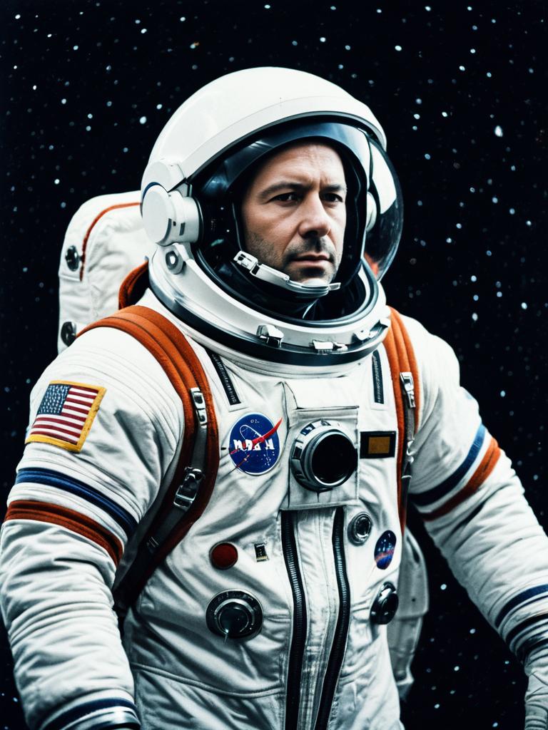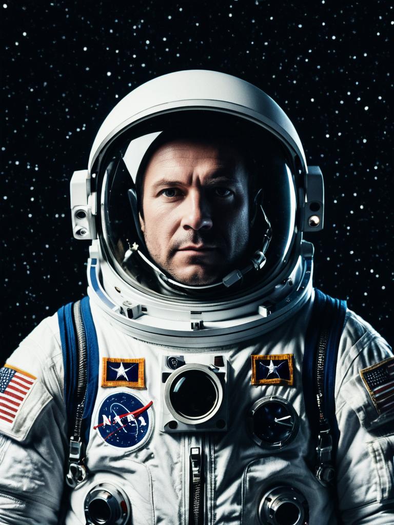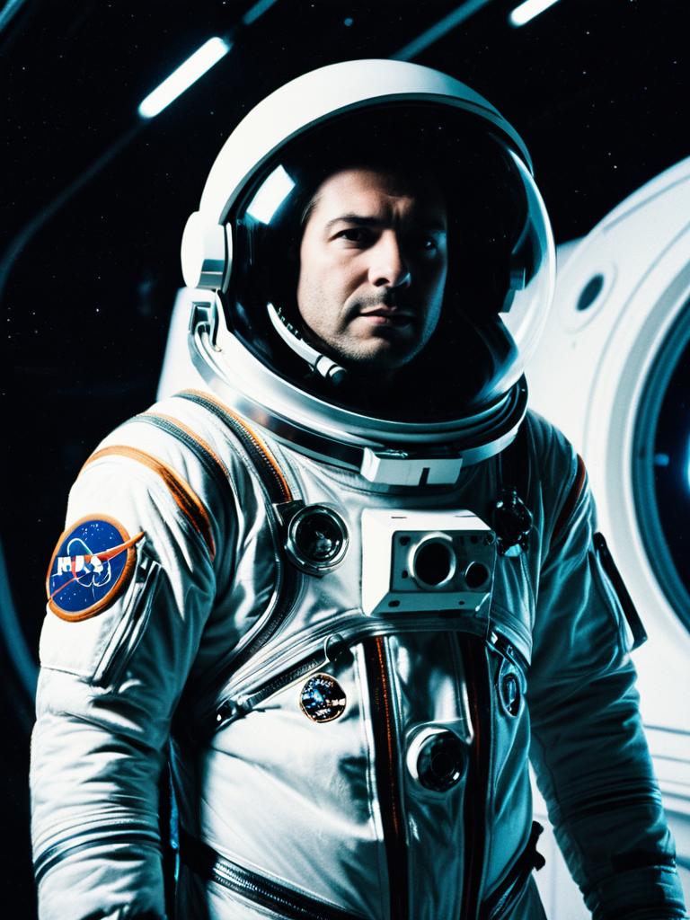 Man in Astronaut Costume, cinematic realism, space explorer portrait