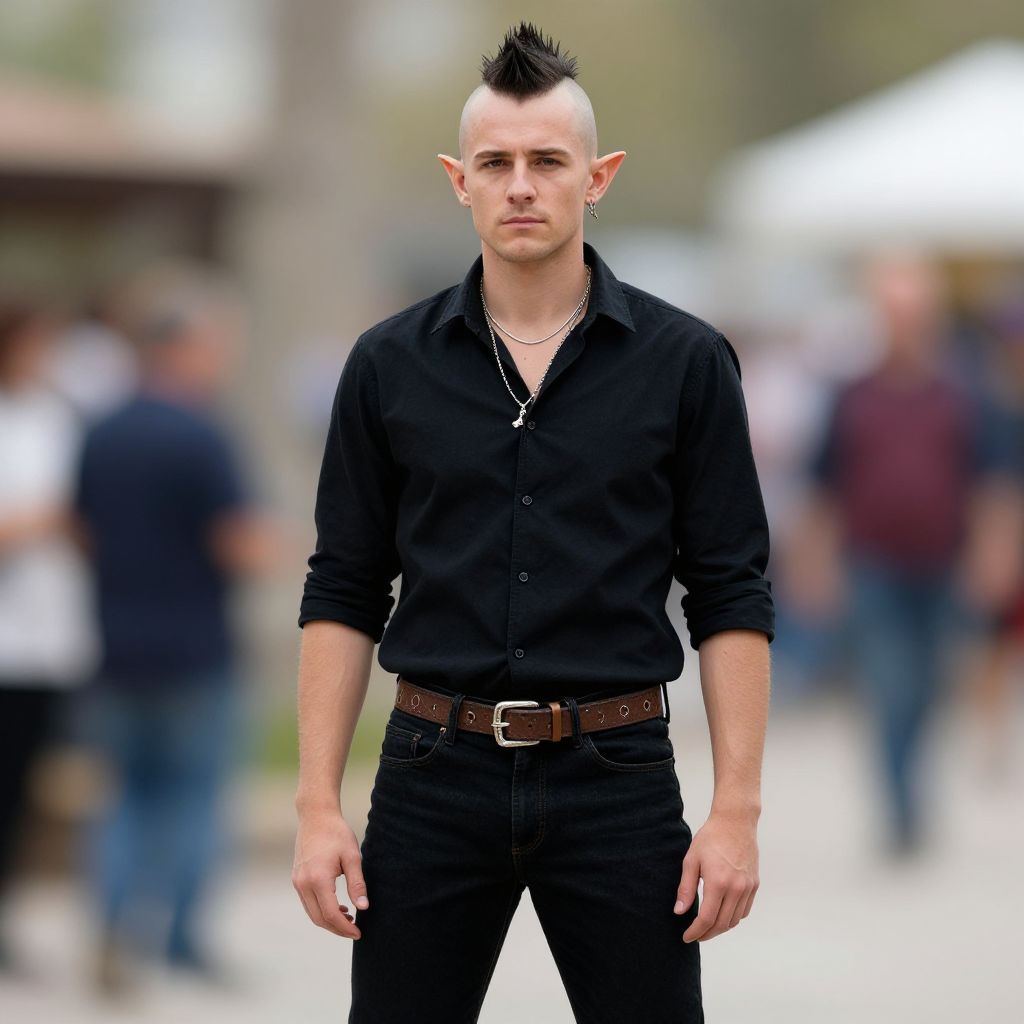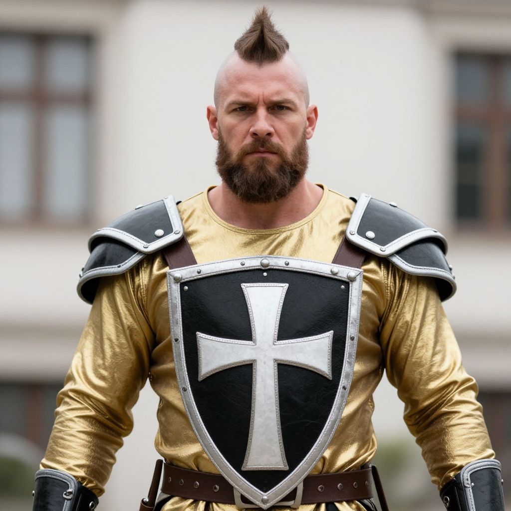 Stylish Man with Red Mohawk and Gold-Accent Coat