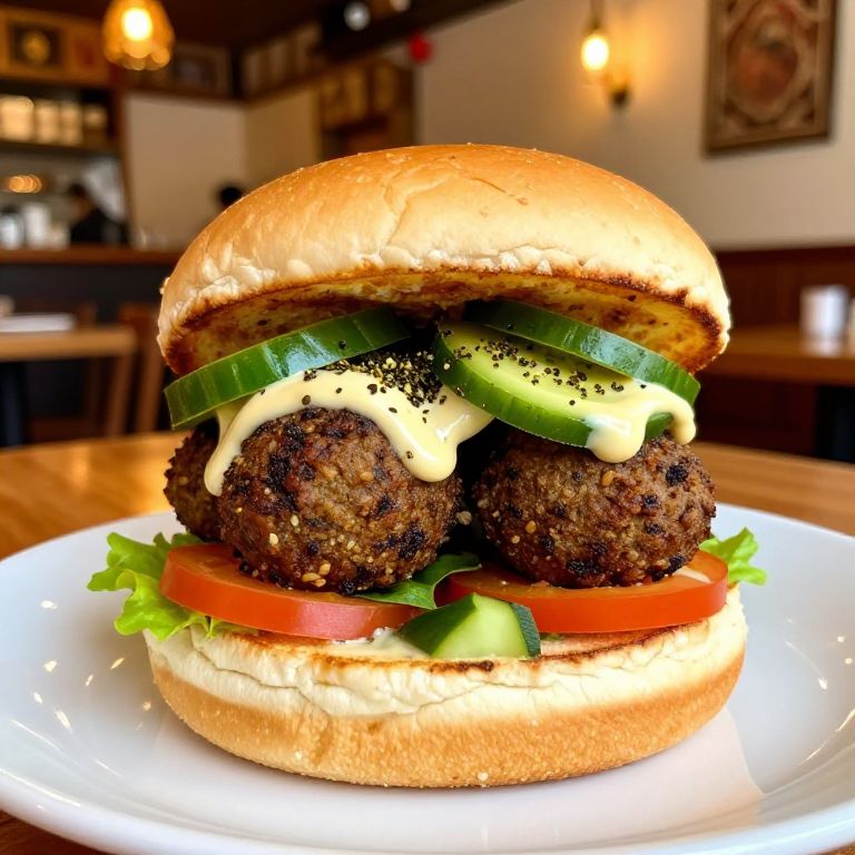Close-Up Falafel Burger in Cozy Cafe