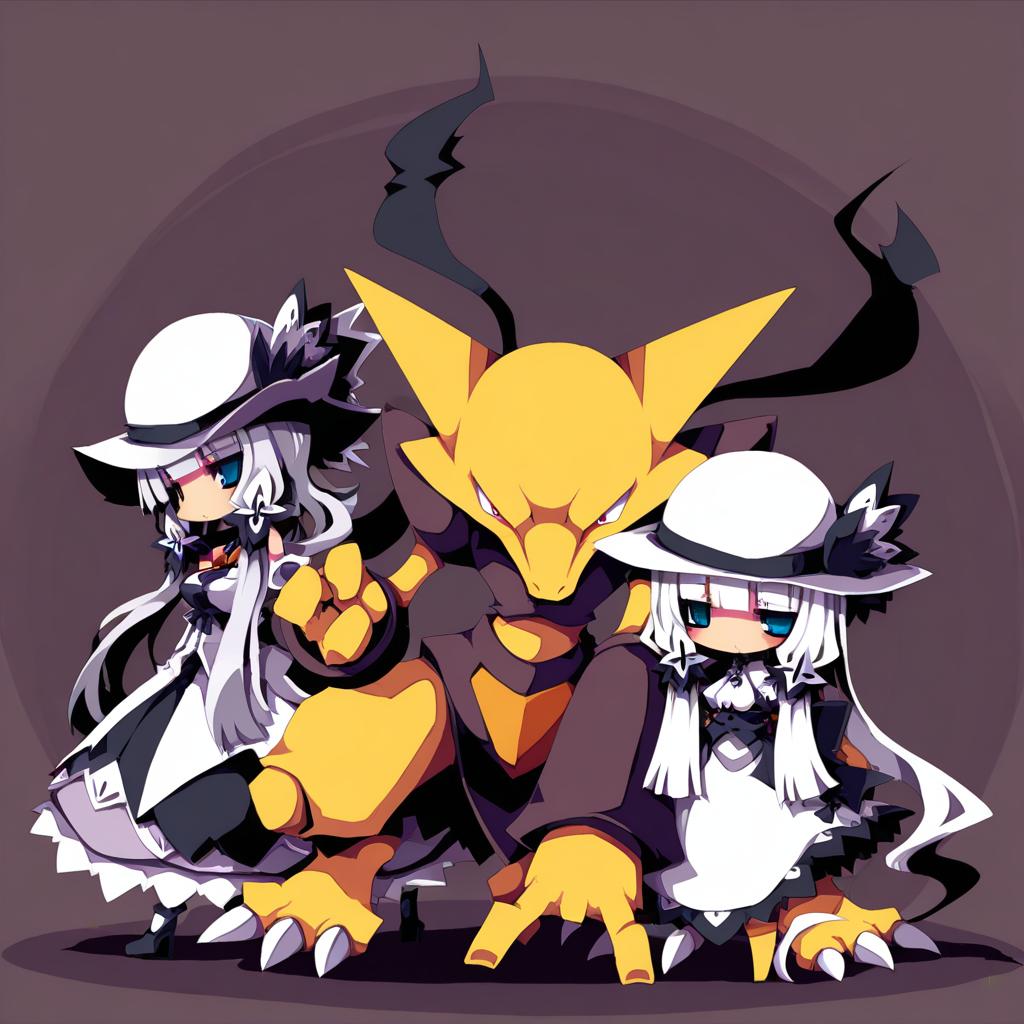 Illustration of Alakazam, pokemon in the style of Dangomushi