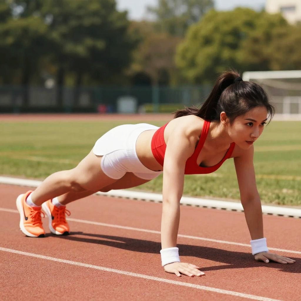 Athletic Woman Stretching on Track