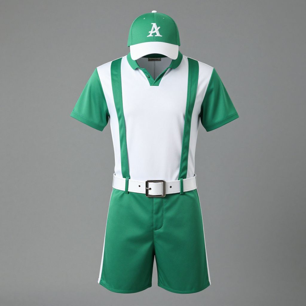 Sports Dress Costume, dressed in green and white with a hat and a belt