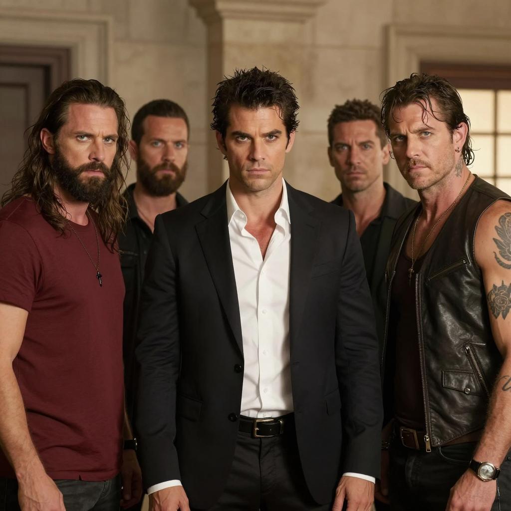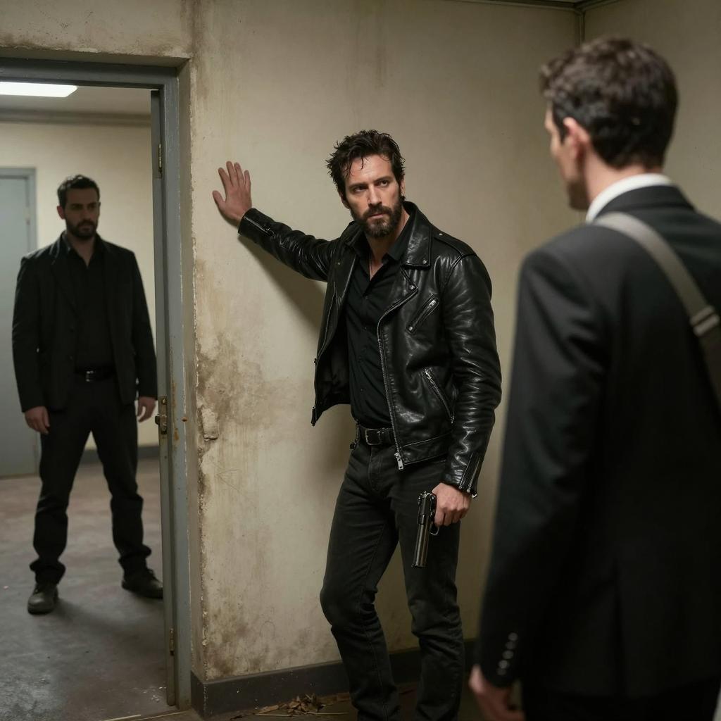 Two Men in Flooded Dimly Lit Room