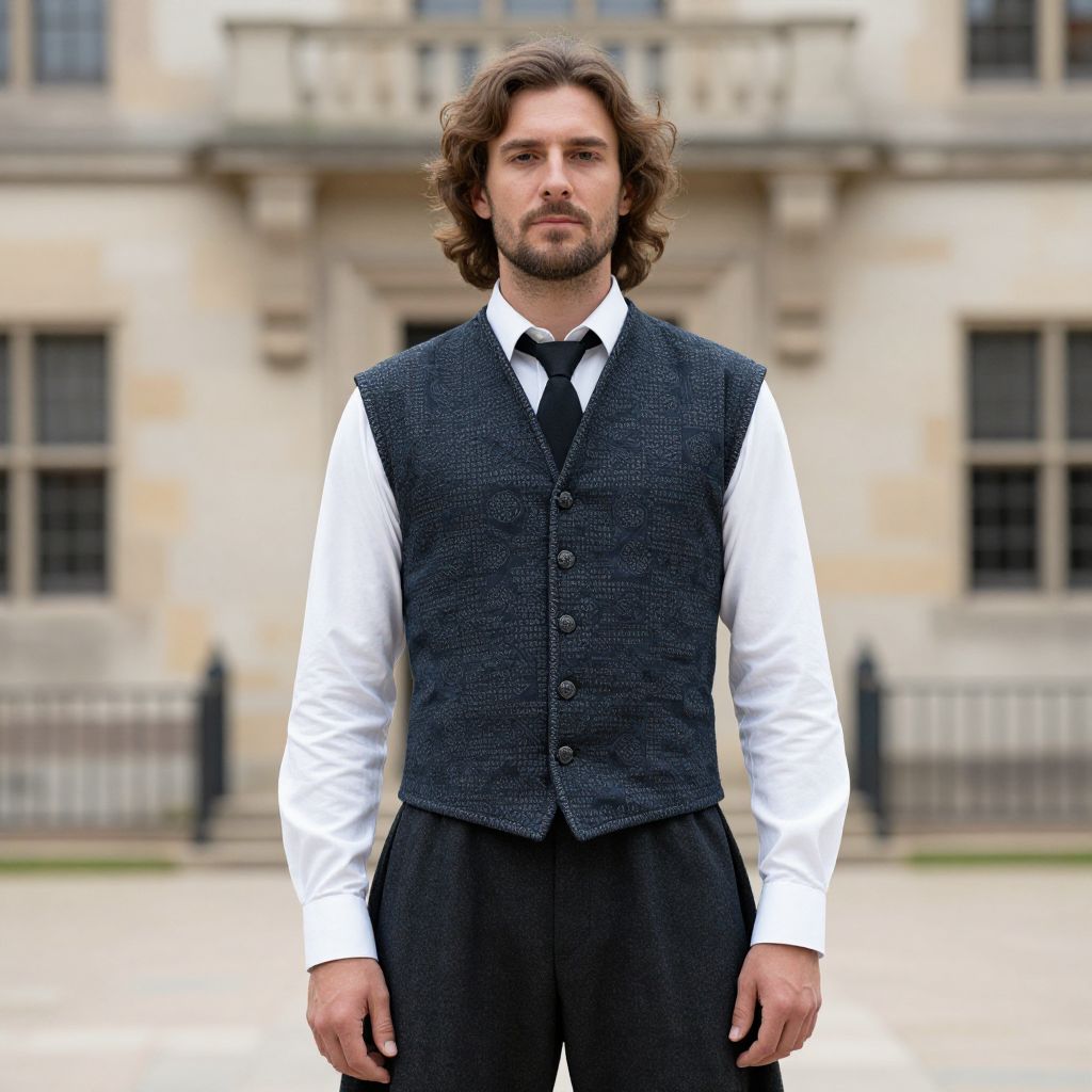 Man medieval sleeveless waistcoats costume renaissance victorian waistcoats vests, man in a vest and tie standing in front of a building