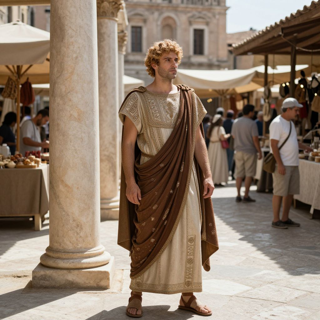 Roman Woman in Ancient Marketplace