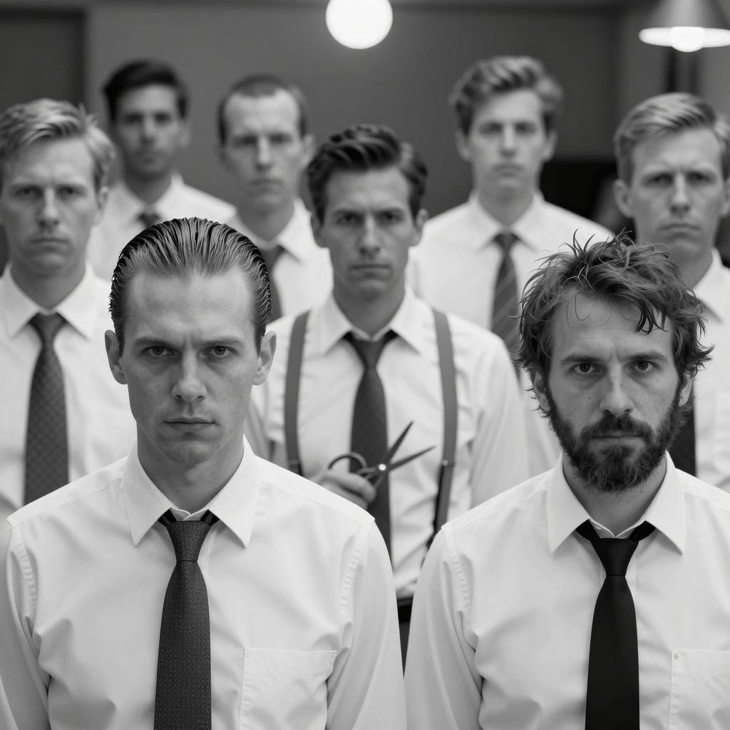 Serious Men in Suits Under Rain
