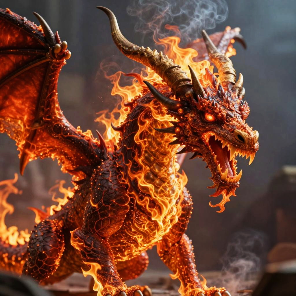 Realistic mythical fire drake with coiling body curling around a burning log in twilight woodland with glowing fungi, glowing tail flame casting warm rim light, drifting embers, soft smoke and subtle heat shimmer, hyper-detailed orange scales and tiny claws, wet surfaces reflecting the fire, volumetric god rays through foliage, cinematic color grading, high resolution, dynamic lighting, crisp focus on the eyes, dramatic composition, natural textures, environmental storytelling