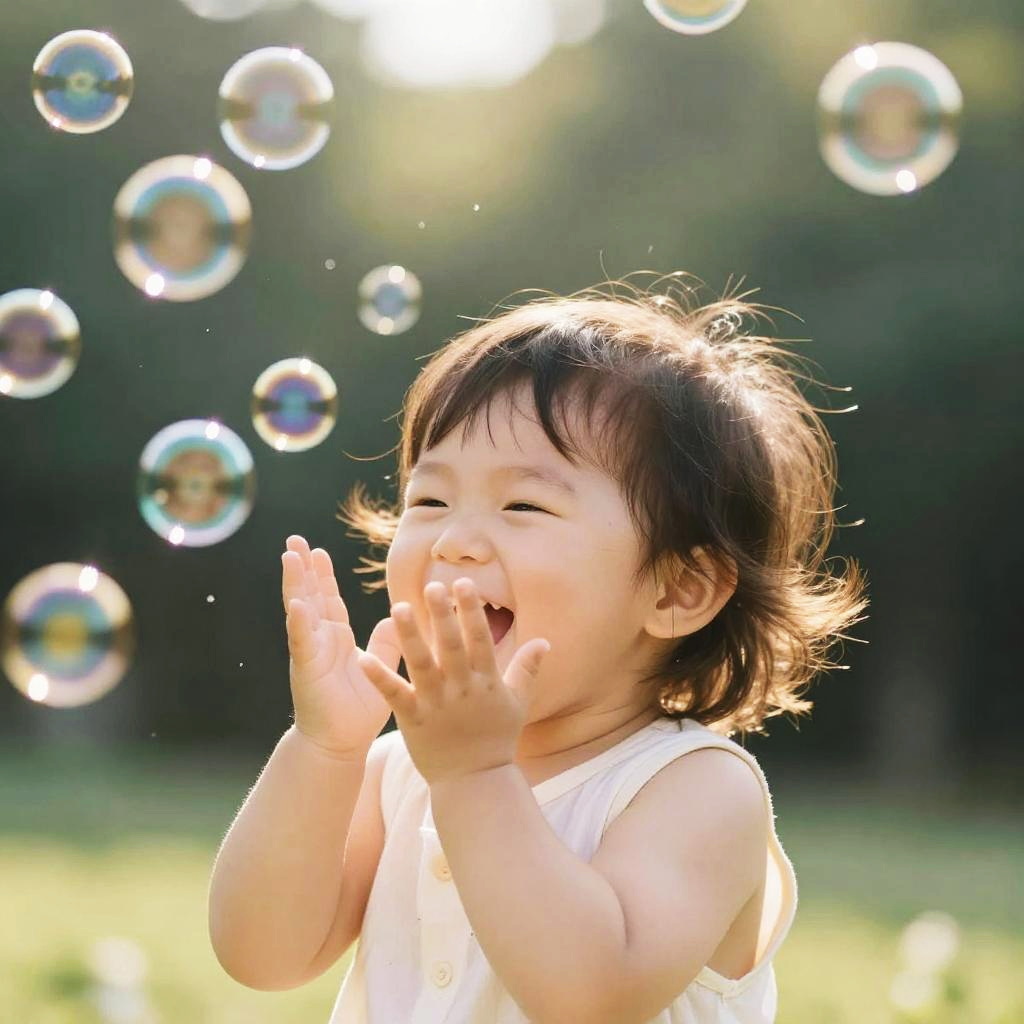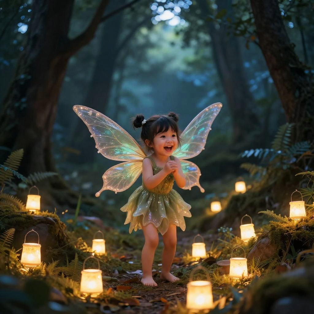 A scene of playful innocence captured in a giggling puppy surrounded by bouncing daisies, beneath a shimmering twilight.