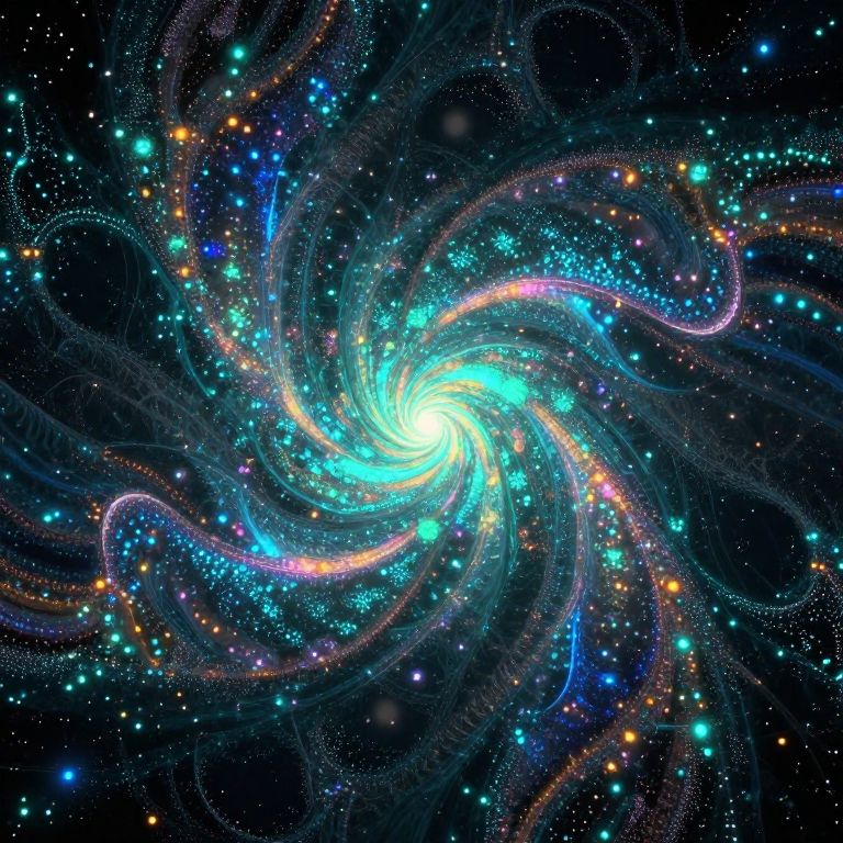 Abstract representation of kilowat energy as flowing liquid metal mixed with vibrant electricity, twisting and spiraling through a dark void, illuminated by pulsing neon lights, futuristic and energetic aesthetic, immersive depth and texture.
