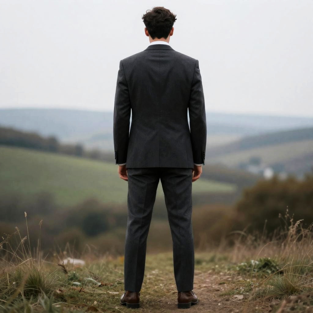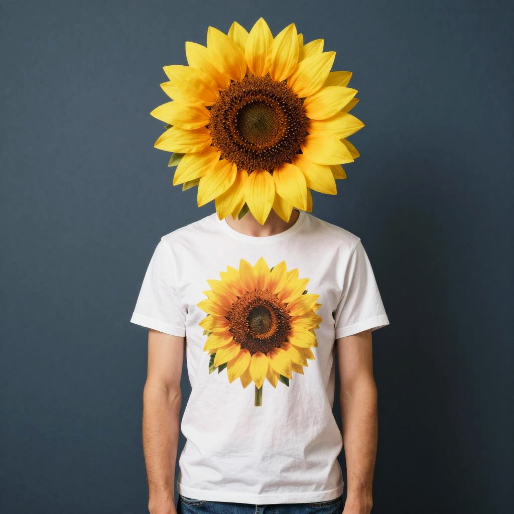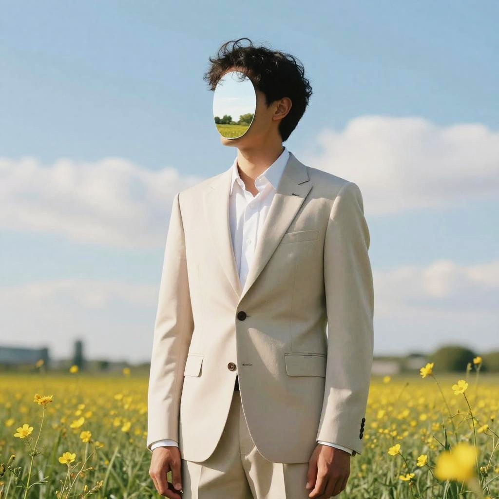 Surreal Man with Mirrored Face in Meadow