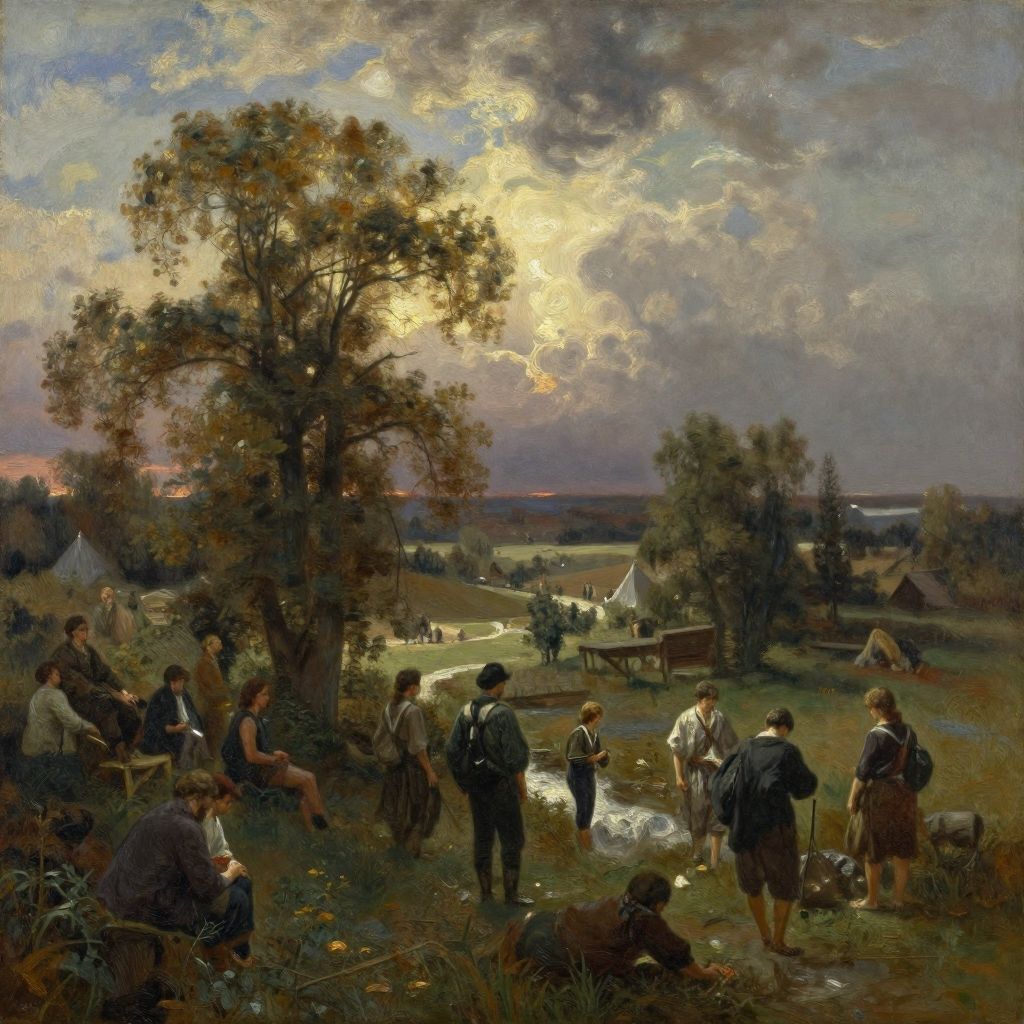 (masterpiece, best quality, hyper detailed, ultra realistic, 32k, RAW photo) a beutiful oil painting of a landscape, perfect composition and chiaroscuro by Rembrandt, concept art, by Jarek Kubicki, by Raphael Lacoste, John Pitre, Karine Eibatova, by Ralph Blakelock, by Julie Bell, by Jim Warren, by Aleksey Savrasov