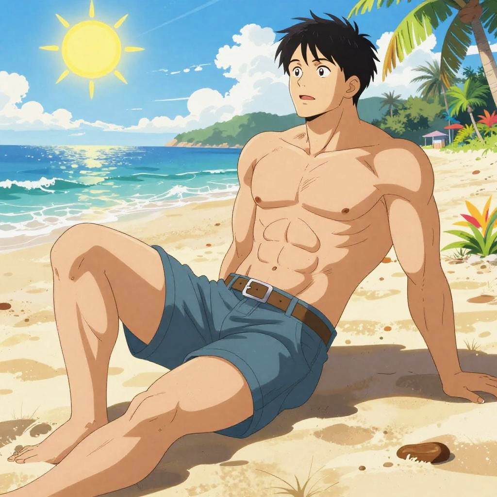 Muscular Anime Characters at Vibrant Beach