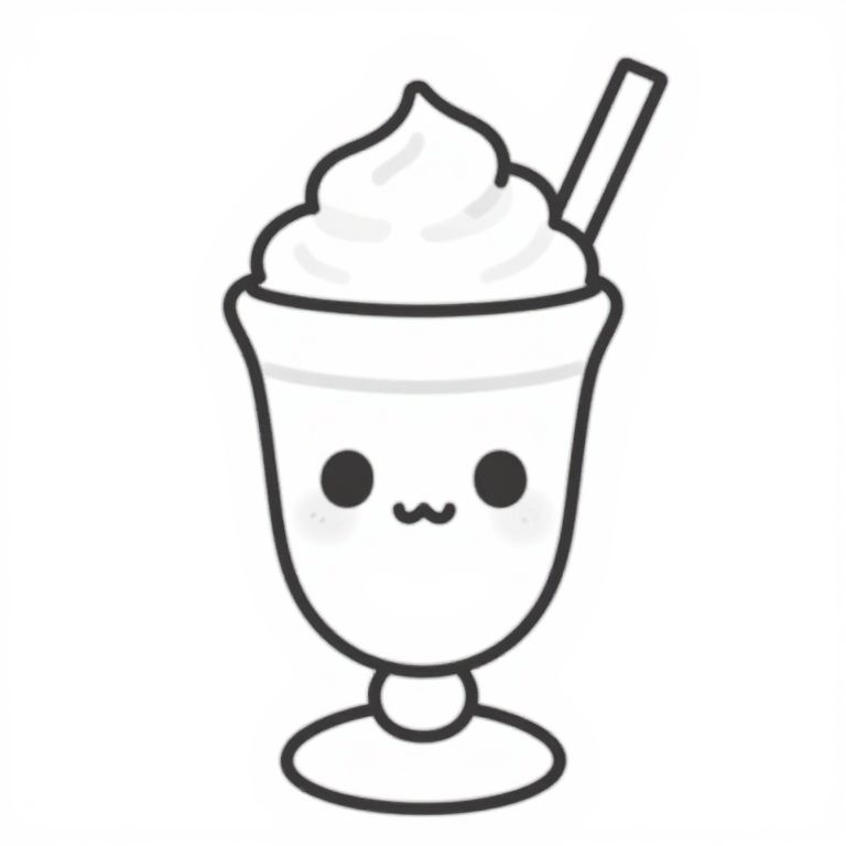 Acoustic milkshake, kawaii style, cute, black line art with white background for coloring book page, manga style, whipped cream,