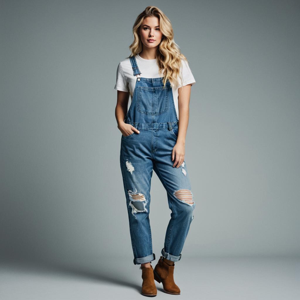 Stylish Woman in Denim and T-Shirt