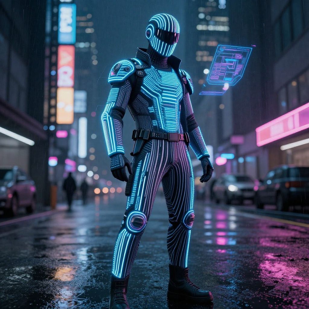 Futuristic Knight Helmet in Cyberpunk City
