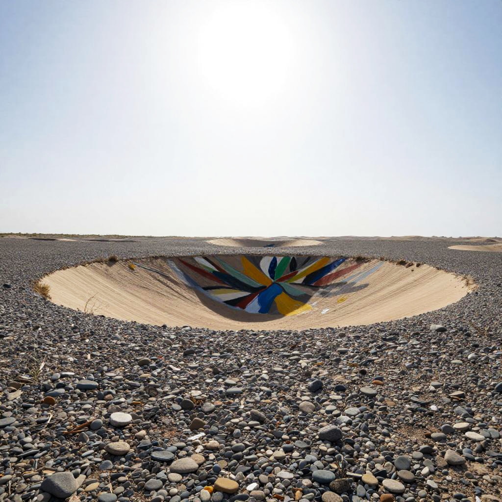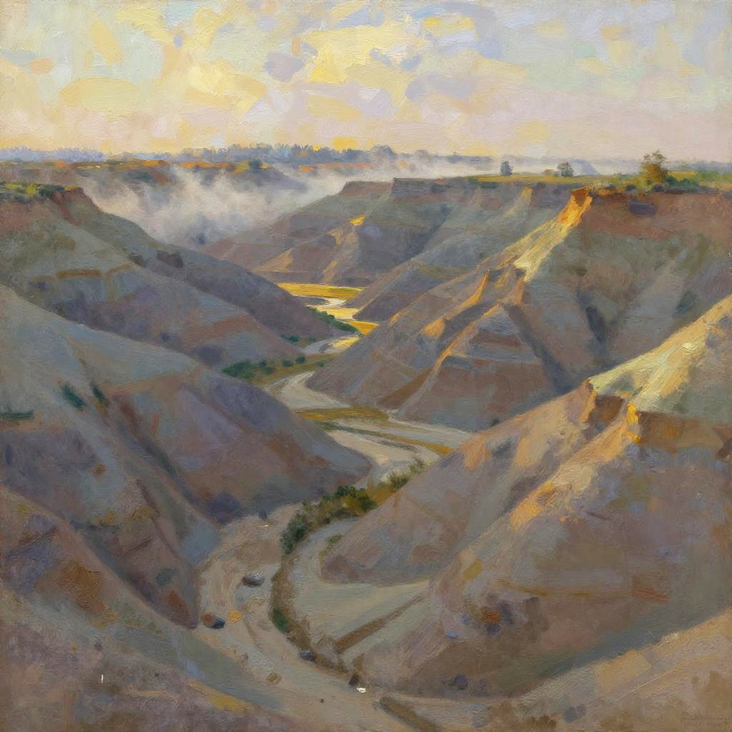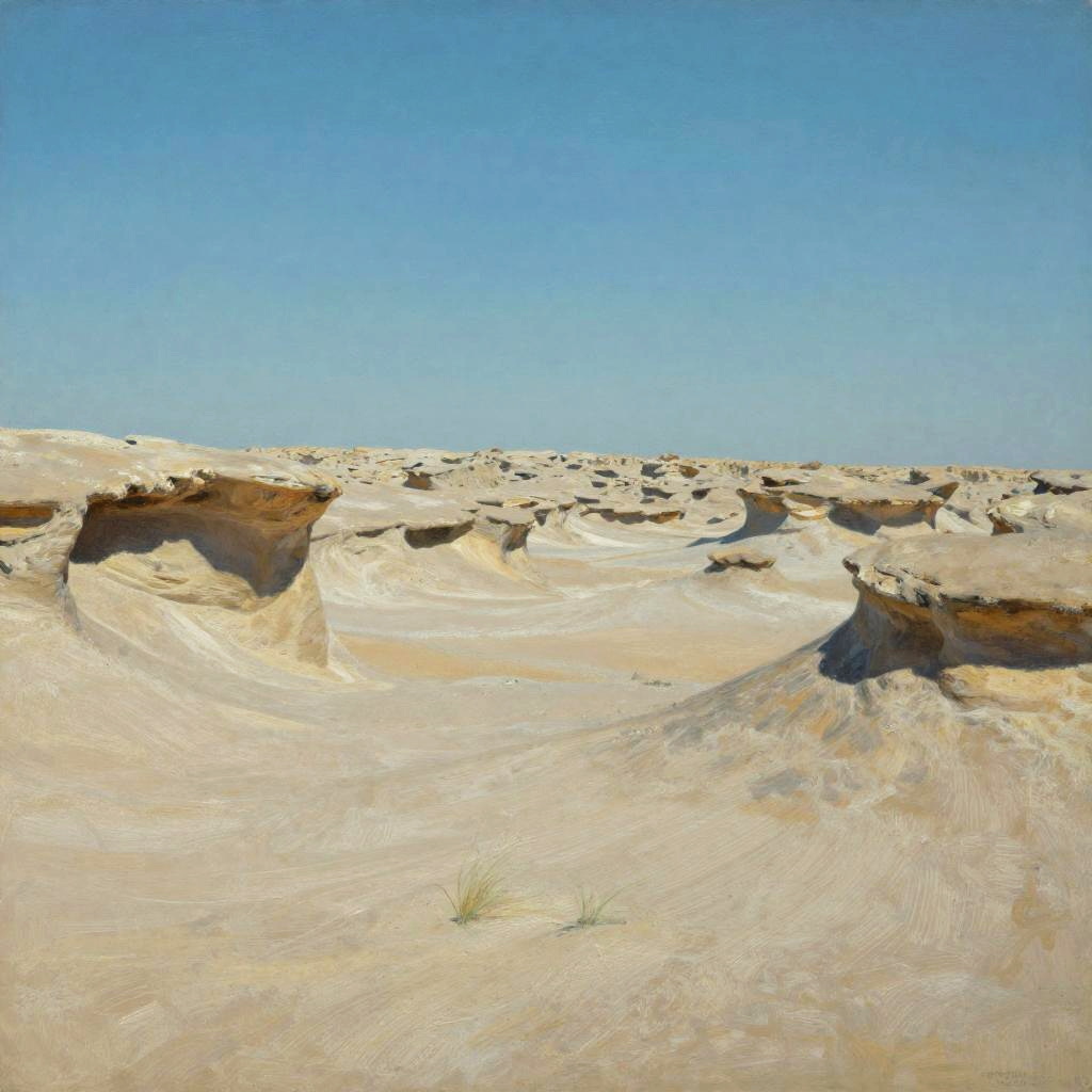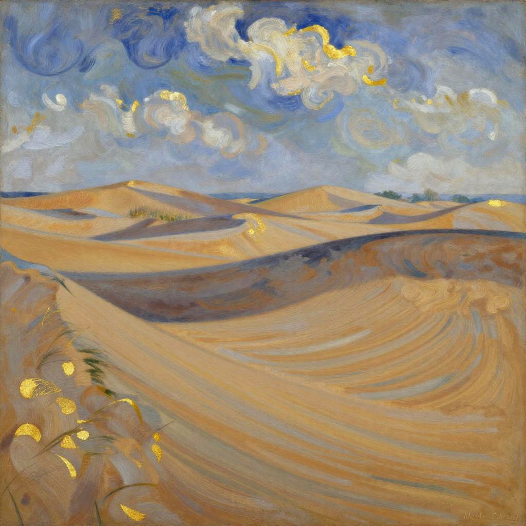 Sandy Expanse, dried riverbeds, clear starry night, night, Impressionist – loose brushwork and soft edges