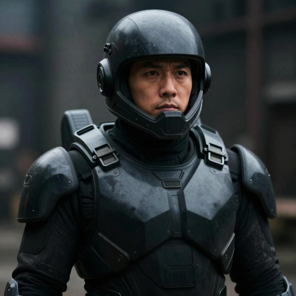 Futuristic Armored Man Close-Up Shot
