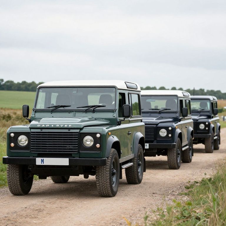 Line of Land Rovers