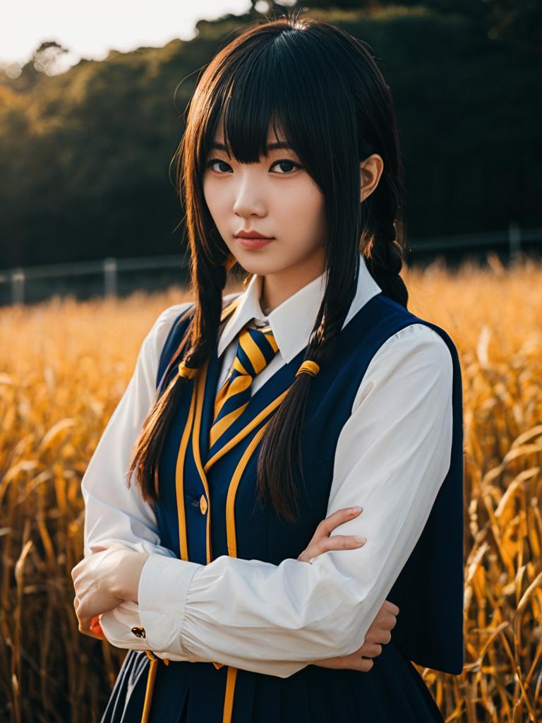 Sexy cosplay woman character wearing Kanon Shibuya costume. Realistic photo. Jane Doe dressed as Kanon Shibuya --sref 1393